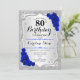 80th Birthday - Silver Stripes Royal Blue Roses Invitation