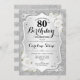 80th Birthday - Silver Stripes White Roses Invitation