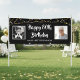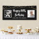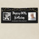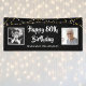 Celebrate any age birthday (shown for an 80th) with this custom text and color banner sign (shown in black and white) featuring 2 photos with a border of gold and white string lights. ASSISTANCE: For help with design modification or personalization, color change, resizing, transferring the design to another product or you would like coordinating items, contact the designer BEFORE ORDERING via Zazzle Chat or makeitaboutyoustore@gmail.com.