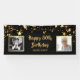 Honor and celebrate the 80-year-old and welcome party guests with this black and gold star themed banner sign featuring THEN and NOW photos of the birthday man or woman. Title is editable for ANY birthday. PHOTO TIP: For fastest/best results, choose a photo with the subject in the middle and/or pre-crop it to a square shape BEFORE uploading and it will fill in the photo space provided perfectly. Contact the designer if you’d like this design modified, on another product or would like coordinating items to complete your party ensemble.