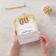 A white background, decorated with faux gold confetti on the inside. Personalize and add a name, party details, RSVP date, return address and name. Number 80 is written with a balloon style number.