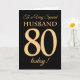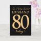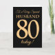 80th Gold-effect on Black, for Husband Birthday Card