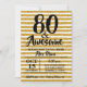 Simulated gold glitter and white stripes 80 & Awesome birthday party invitations guests will love.