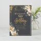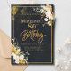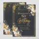 80th Modern Black & Gold Floral Glitter Birthday Invitation