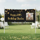 Celebrate any age birthday (shown for an 80th birthday) for him or her with this custom color photo banner sign featuring a gold stars border and personalized with a pictures and your custom text (the sample suggests HAPPY # BIRTHDAY NAME in an editable modern, calligraphy script) shown on an editable black background. The sample is shown in a 2.5x6' indoor banner--other sizes or "outdoor" option is available on the ordering page. ASSISTANCE: For help with design modification/personalization, color change, transferring the design to another product or if you would like coordinating items, contact the designer BEFORE ORDERING via the Zazzle Chat MESSAGE tab or email at makeitaboutyoustore@gmail.com.