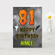 The front of this scary and spooky Hallowe’en themed birthday greeting card design features a large number “81”. It also features the message “HAPPY BIRTHDAY,”, plus a custom name. There are also depictions of a bat and a ghost on the front. The inside features a custom birthday greeting message, or could perhaps be cleared and left blank if a message is to be written by hand instead. A custom birthday card like this might be a fun way to send birthday wishes to somebody who is celebrating their eighty first birthday and who was also born on October 31st (Halloween). [~Z0000547]
