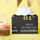 This elegant and luxurious birthday-themed wrapping paper design features the message "HAPPY 81st BIRTHDAY,", a personalized name, and the birthday number "81st" having a faux/imitation gold inspired appearance pattern. The background is colored black. Wrapping paper like this might be used when wrapping gifts or presents to be given in celebration of somebody’s 81st birthday. [~Z0000454]