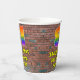 This vibrant and exciting urban street art and graffiti inspired birthday paper cup design features a large number “81” having a colorful rainbow spectrum gradient inspired pattern. It also features the message “Happy 81st Birthday,”, and a personalized name. The background has a brick wall pattern. Vibrant, colorful paper cups like this might be fun to have at a birthday celebration/party being held in celebration of somebody’s 81st birthday. [~Z0000543]