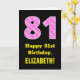 81st Birthday: Pink Stripes and Hearts "81" + Name Card