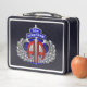This is a standard metal lunchbox that appears to work just fine. We designed this box ourselves with an uploaded photo and custom text on the front and back. It looks absolutely beautiful except the front of the lunchbox is not centered like it shows in the photo. The print borders don't align with the inset flat part of the box where the preview photo online showed it perfectly centered in there. The back looks nice and centered though.