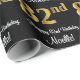 This sophisticated, stylish, and elegant birthday themed wrapping paper design features a large ordinal number “82nd” having an imitation/faux gold-like look, in addition to the birthday greeting message “Happy 82nd Birthday,” and an editable recipient name in a script-style font. The background is colored black. Stylish birthday themed wrapping paper like this might be a fun way to wrap a gift or present being given to celebrate somebody’s eighty second birthday. [~Z0000515]