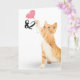 Gold tabby cat with pink heart balloon for 82nd birthday on white background.