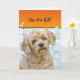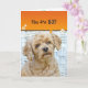 Cute brown poodle with daisies on wicker chair for 83rd birthday,