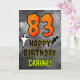 The front of this spooky and scary Hallowe’en themed birthday greeting card design features a large number “83”. It also features the message “HAPPY BIRTHDAY,”, and an editable name. There are also depictions of a ghost and a bat on the front. The inside features a custom birthday greeting message, or could perhaps be cleared and left blank if a message is to be written by hand instead. A customizable birthday card like this might be a fun way to acknowledge somebody’s eighty third birthday that also falls on October 31st (Halloween). [~Z0000547]