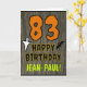 The front of this scary and spooky Halloween birthday themed greeting card design features a large number "83". It also features the message "HAPPY BIRTHDAY,", plus a custom name. There are also depictions of a ghost and a bat on the front. The inside features a custom birthday greeting message, or could perhaps be cleared and left blank if a message is to be written by hand instead. A custom birthday card like this might be a fun way to send birthday wishes to somebody who is celebrating their eighty third birthday and who was also born on October 31st (Halloween). [~Z0000410]