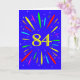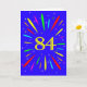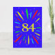 An explosive 84th birthday card! What a wonderful way to send birthday greetings. The number 84 in bright yellow with an explosion of bright colors and stars.