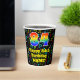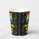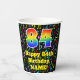 This colorful and joyful music-themed birthday paper cup design features a large number “84” with a rainbow spectrum gradient inspired pattern, along with the message “Happy 84th Birthday,”, and a custom name. The background features a multicolored pattern having music notes and symbols of various colors and sizes. Colorful, vibrant paper cups like this might be fun to have at a birthday celebration/party being held to honor somebody’s eighty fourth birthday. [~Z0000541]