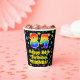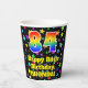 This colorful and fun birthday paper cup design features a large number “84” having a rainbow spectrum gradient inspired pattern. It also features the message “Happy 84th Birthday,”, and a custom name. The background features an exciting and colorful pattern having many star shapes with different sizes and colors. Colorful, vibrant paper cups like this might be fun to use at a birthday celebration/party being held to celebrate somebody’s eighty fourth birthday. [~Z0000540]
