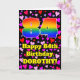 The front of this happy and cheerful birthday greeting card design features a large number “84” having a rainbow spectrum gradient inspired pattern. It also features the message “Happy 84th Birthday,”, and an editable name. The background of the front features a pattern of pink, red, and purple heart shapes of various sizes. The inside has an editable birthday greeting message, or could perhaps be cleared and left blank if a message is to be written by hand instead. A cheerful, customizable birthday greeting card like this might be sent to celebrate somebody’s eighty-fourth birthday. [~Z0000551]