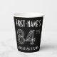 This elegant 1920s-1930s era inspired art deco style birthday paper cup design features a personalized name, along with the message “84TH BIRTHDAY PARTY!”. The number “84TH” has a fancy geometric lined appearance. Paper cups like these might be used at a party held in celebration of somebody’s eighty-fourth birthday, or some other 84th event. [~Z0000658]