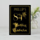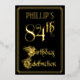 The front of this ornate, luxurious, foil eighty-fourth birthday celebration invitation design features the message “84th Birthday Celebration” in elegant script-style text. It also has a personalized name. The background of the front is colored black by default (although it can be customized to a different color). The back features personalized details about the event, such as the date, time, location, and any other information that may be relevant. Fancy, opulent, editable invitations like these might be used to invite guests to a birthday party/celebration being held to celebrate somebody’s 84th birthday. [~Z0000589]