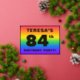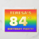 The front of this vibrant eighty-fourth birthday celebration/party foil invitation card design features a custom name, a large number “84th”, the message “BIRTHDAY PARTY!”, and a border. The background of the front has an exciting, multicolored, rainbow spectrum inspired gradient pattern. The back features personalized details about the event, such as the date, time, venue/location, and any other important information. Customized invitations like these might be a fun way to invite attendees/guests to a birthday gathering/party being held to honor somebody’s 84th birthday. [~Z0000599]