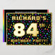 The front of this joyful eighty-fourth birthday party foil invitation card design features a personalized name, a large number “84th”, the message “BIRTHDAY PARTY!”, and a border. The background of the front has a fun, multicolored stars pattern. The back features personalized details about the event, such as the date, time, venue/location, and any other important information. Customizable invitations like these might be a fun way to invite guests/attendees to a birthday party being held to honor somebody’s 84th birthday. [~Z0000600]