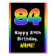 This cheerful and vibrant birthday-themed greeting card design features a large number “84“ having a vibrant multicolored rainbow spectrum inspired gradient pattern, along with the message “Happy 84th Birthday,”, and a custom recipient name. The inside features a custom birthday greeting message, or could perhaps be cleared and left blank if a message is to be written by hand instead. An upbeat, editable birthday greeting card like this might be a fun way to send birthday greetings to somebody who is celebrating their eighty-fourth birthday. [~Z0000628]