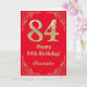 84th Birthday Red and Gold Glitter Frame. For further customization, please click the "Customize it" button and use our design tool to modify this template.