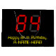 This silly and nerdy birthday-themed gift bag design features a large number "84" with a red seven segment digital display style look, along with the message "Happy 84th Birthday," and a customizable name in geeky computing-inspired yellow text, on a black colored background. Personalized gift bags like this might be used for wrapping gifts or presents being given to somebody who is celebrating their eighty fourth birthday. [~Z0000389]