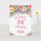 84th Birthday Watercolor Floral Flowers Pink Card with personalized name and age. For further customization, please click the "Customize it" button and use our design tool to modify this template.