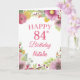 84th Birthday Watercolor Floral Flowers Pink Card with personalized name and age. For further customization, please click the "Customize it" button and use our design tool to modify this template.