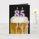 Number 85 lit birthday candles in mug of beer on black for 85th birthday.