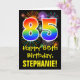 85th Birthday: Fun Fireworks Pattern + Rainbow 85 Card
