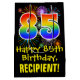 This colorful, exciting, and fun birthday-themed giftbag design features a large number "85" with a rainbow spectrum gradient inspired pattern, along with the message "Happy 85th Birthday,", and a personalized recipient name. It also has a colorful background pattern inspired by the appearance of bursting celebratory fireworks. A gift bag like this might be a fun way of wrapping a birthday present or gift being given to somebody who is celebrating their 85th birthday. [~Z0000509]