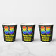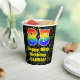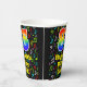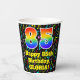 This cheerful and fun music-themed birthday paper cup design features a large number “85” with a rainbow spectrum gradient inspired pattern, along with the message “Happy 85th Birthday,”, and a personalized name. The background features a colorful music notes and symbols pattern. Vibrant, colorful paper cups like this might be fun to use at a birthday party/celebration being held to honor somebody’s eighty fifth birthday. [~Z0000541]