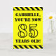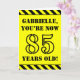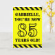 The front of this attention-grabbing and bold birthday themed greeting card design features a custom name and the message "YOU’RE NOW 85 YEARS OLD!" in black stencil style text on a yellow colored background. There is also an eye-catching yellow and black stripes pattern at the top and bottom edges of the front. The inside features a customizable birthday greeting message, or could perhaps be cleared and left blank if a message is to be written by hand instead. A personalized birthday card like this might be a fun way to send birthday wishes to somebody who is celebrating their eighty fifth birthday. [~Z0000413]