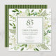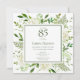 This white hydrangea 85th birthday party/brunch invitation is whimsical and stunning! With its watercolor multi-hued white hydrangeas, wispy natural greenery, and coordinating green striped back it is perfect for celebrating your wife, mom, sister, aunt, friend, grandmother, great grandmother. By selecting Personalize this template and typing in your information you can see your gorgeous 85th birthday party invitations in seconds!