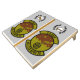 Natural Wood Cornhole Set, Yellow and Purple bags
