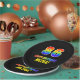 This colorful, fun, and cheerful birthday themed paper plate design features a large number "86" and the message "HAPPY BIRTHDAY,", both colored with a rainbow spectrum gradient inspired pattern, along with a bold yellow customizable name. It has a black colored background. Fun, personalized paper plates like this might be used at a birthday celebration being held in honor of somebody’s 86th birthday. [~Z0000488]