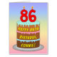 86th Birthday: Fun Cake & Candles, w/ Custom Name Card