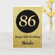 86th Happy Birthday Black and Gold Glitter Card with personalized name. For further customization, please click the "Customize it" button and use our design tool to modify this template.