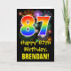 87th Birthday: Fun Fireworks Pattern + Rainbow 87 Card