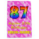 87th Birthday: Fun Pink Hearts Stripes; Rainbow 87 Medium Gift Bag