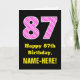 87th Birthday: Pink Stripes and Hearts "87" + Name Card