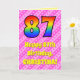 87th Birthday: Pink Stripes & Hearts, Rainbow # 87 Card