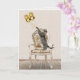 Gray tabby cat with gold foil balloons on an old-fashioned chair for 88th birthday.