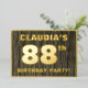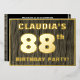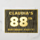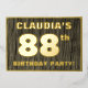The front of this bold eighty-eighth birthday party foil invitation card features a personalized name, a large number “88th”, the message “BIRTHDAY PARTY!”, and a border, all in foil. There is a rustic, yet elegant, faux wood grain appearance inspired pattern for the background of the front. The back features personalized details about the event, such as the date, time, place, and any other information that may be relevant. Personalized invitations like these might be used to invite attendees/guests to a birthday gathering/party being held to honor somebody’s 88th birthday. [~Z0000598]
