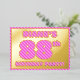 The front of this bold and fun eighty-eighth birthday party/celebration foil invitation card features a customizable name, a large number “88th”, the message “BIRTHDAY PARTY!”, and a border, all featuring a feminine dark pink and light pink striped pattern. The back features personalized details about the event, such as the date, time, venue, and any other relevant information. Customized invitations like these might be used to invite guests to a birthday party being held in celebration of somebody’s 88th birthday. [~Z0000597]