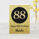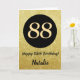 88th Happy Birthday Black and Gold Glitter Card with personalized name. For further customization, please click the "Customize it" button and use our design tool to modify this template.